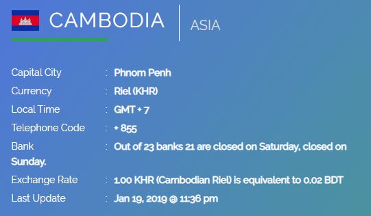 There is no Embassy or High Commission of Cambodia in Bangladesh, the nearest embassy is in New Delhi, India. Bangladeshi Nationals need to apply in New Delhi to have the sticker visa. Cambodia visa from Bangladesh